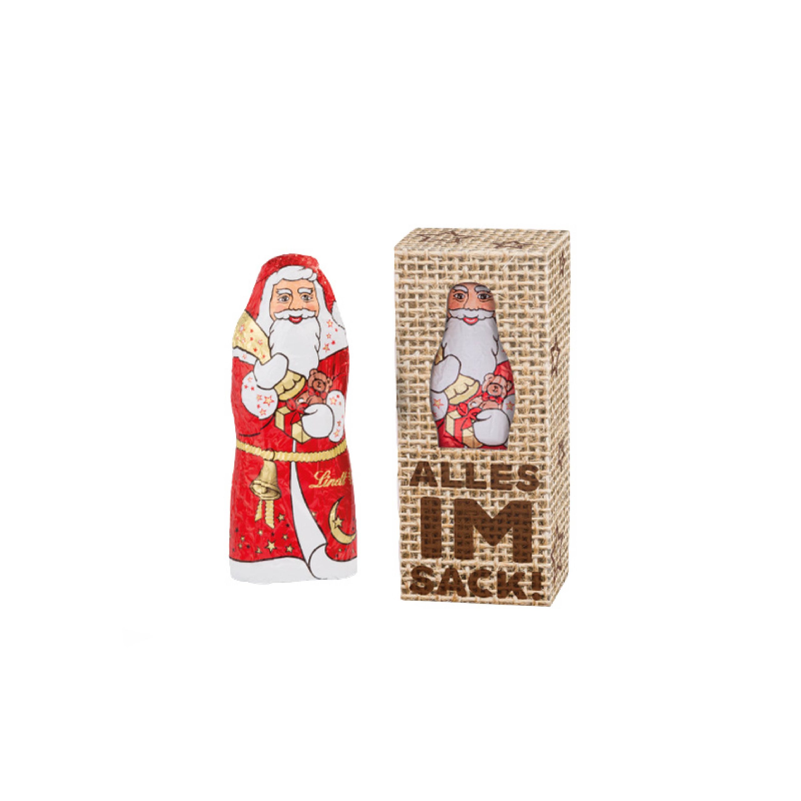 Verras jouw klanten en relaties met deze lekkere kerstman, gemaakt van chocolade. De chocolade kerstman zit verpakt in een klein doosje, deze kan worden voorzien van jouw eigen ontwerp in full colour.