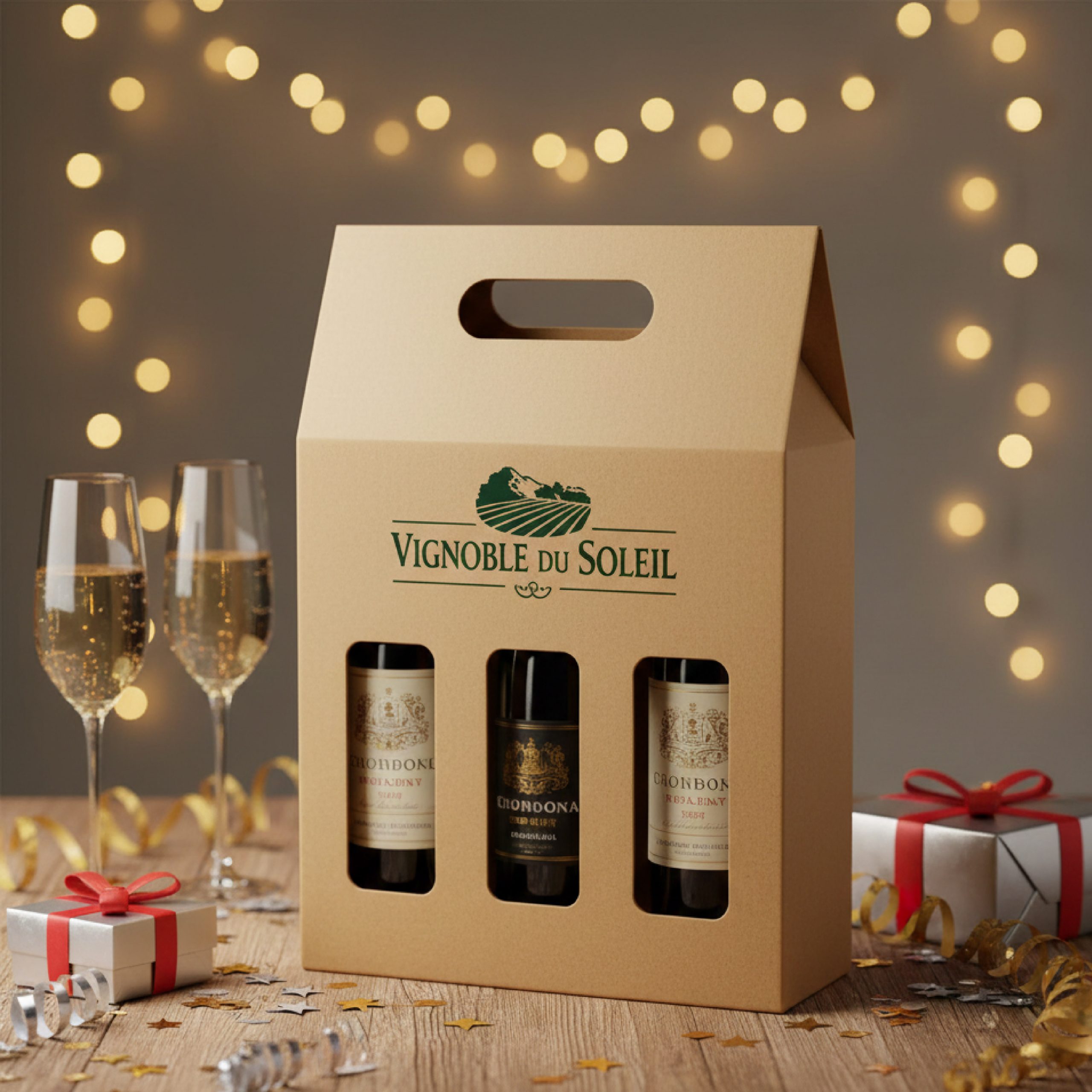 Waarom kiezen als je alles kunt geven? Met onze royale wijndoos voor drie flessen til je jouw geschenk naar een hoger niveau. Of het nu gaat om een complete proeverij of een luxe bedankje, deze stevige kraftkartonnen verpakking met drie vensters biedt de perfecte balans tussen presentatie en bescherming. Verkrijgbaar vanaf 50 stuks!