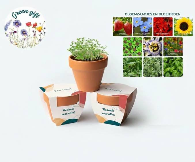 Voeg een vleugje natuur toe aan de zakelijke omgeving met een bloempotje met logo. Deze compacte, duurzame giveaways zijn de ideale manier om bureaus, balies en ontvangstruimtes op te vrolijken. Of je nu op een beurs staat of een blijvende indruk wilt achterlaten bij een zakelijk evenement; een groen geschenk straalt milieubewustzijn en positiviteit uit.