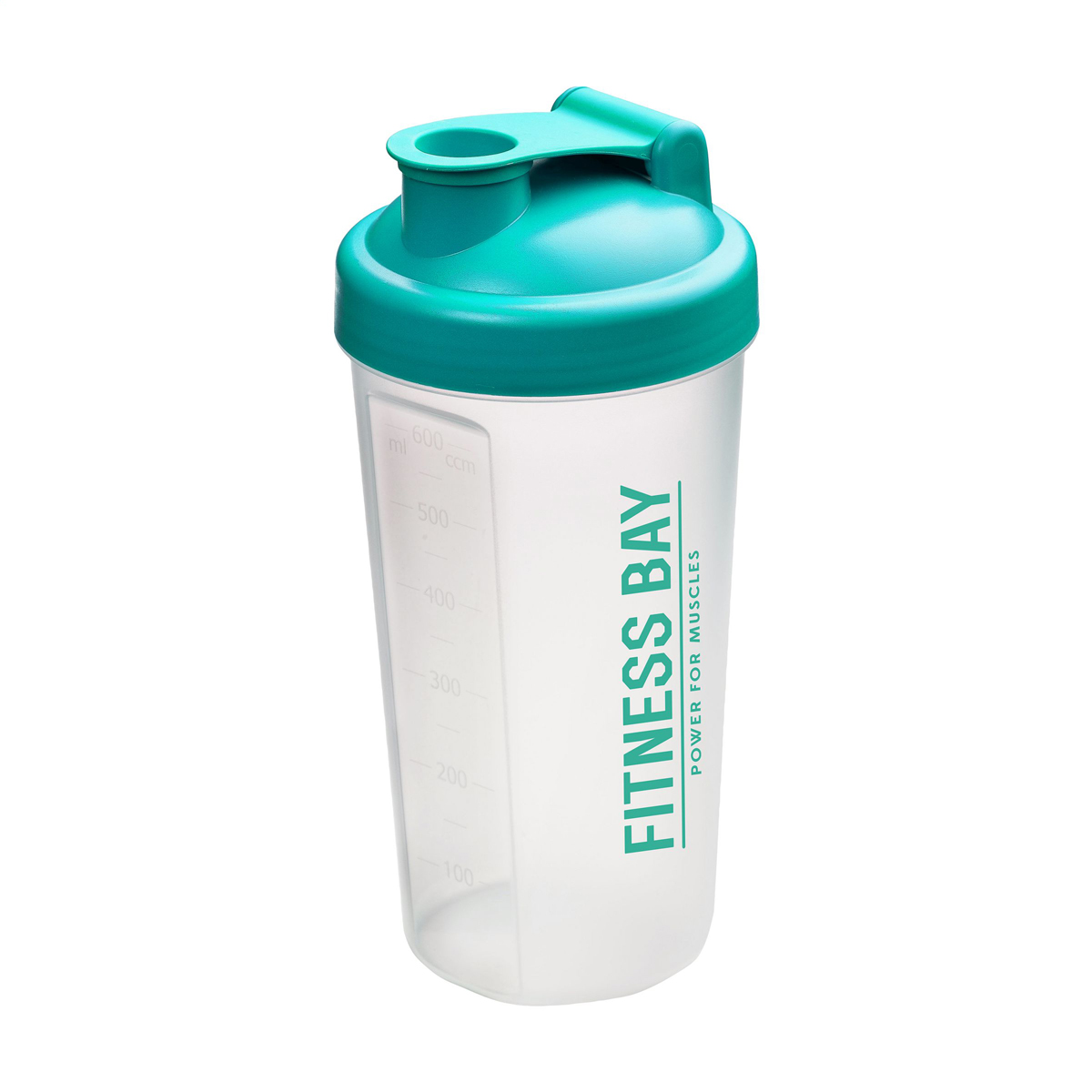Dit is een functionele, transparante kunststof shake-beker. De shakebeker is voorzien van een schroefdop met daarin een afsluitbare drinkopening. De beker heeft een inhoud van 600 ml.