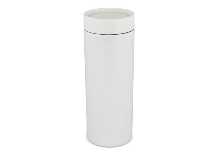Modern ontworpen thermobeker van gerecycled roestvrij staal (400 ml). Met een lekvrije 360-graden drinkdop. Lasergegraveerde logo’s hebben een chroomeffect, maar ook een digital high gloss bedrukking zorgt voor een subtiel effect. Per stuk verpakt in een geschenkdoos.