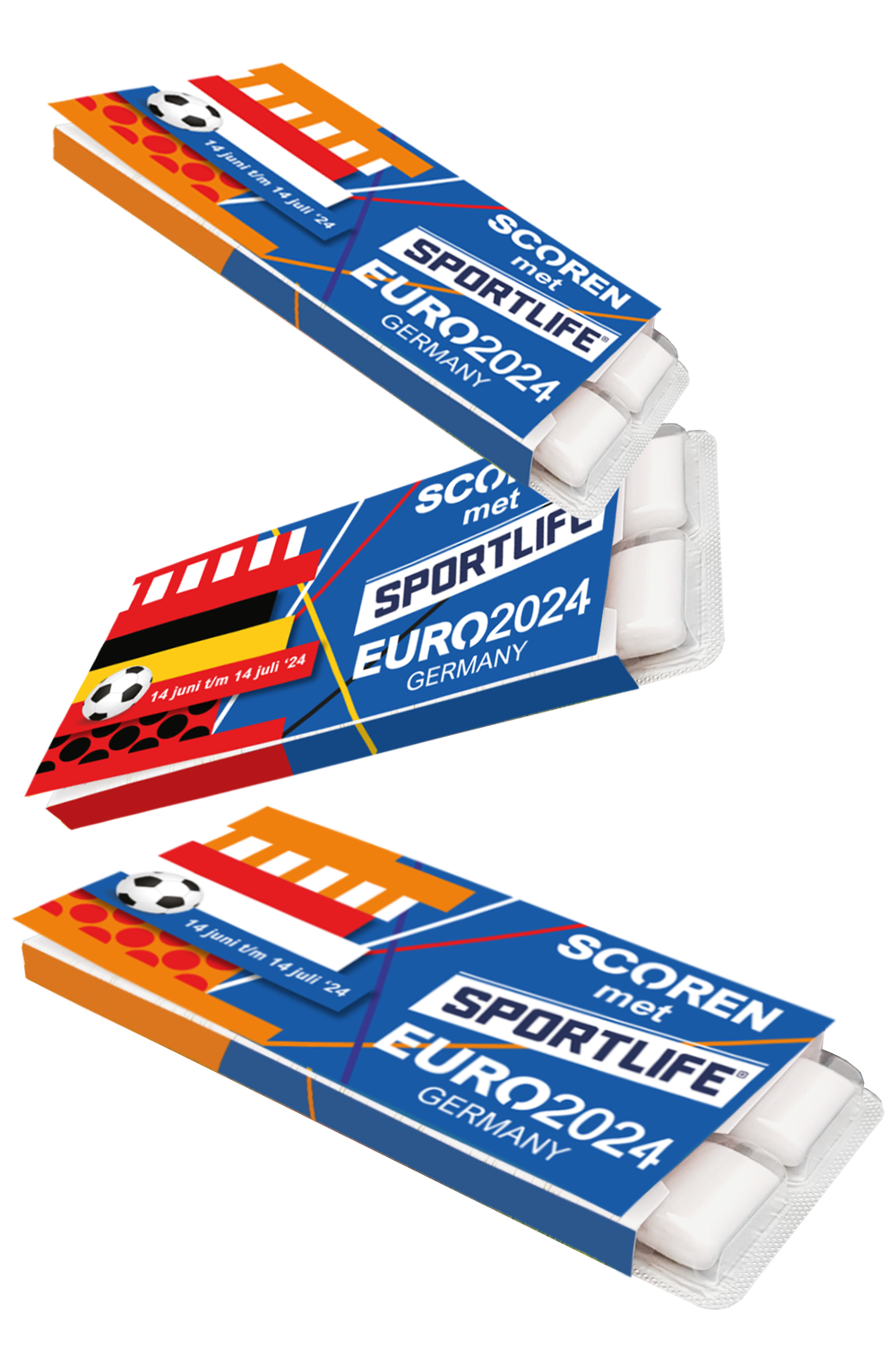 Sportlife kauwgom met EK speelschema is een verfrissende reclamedrager.