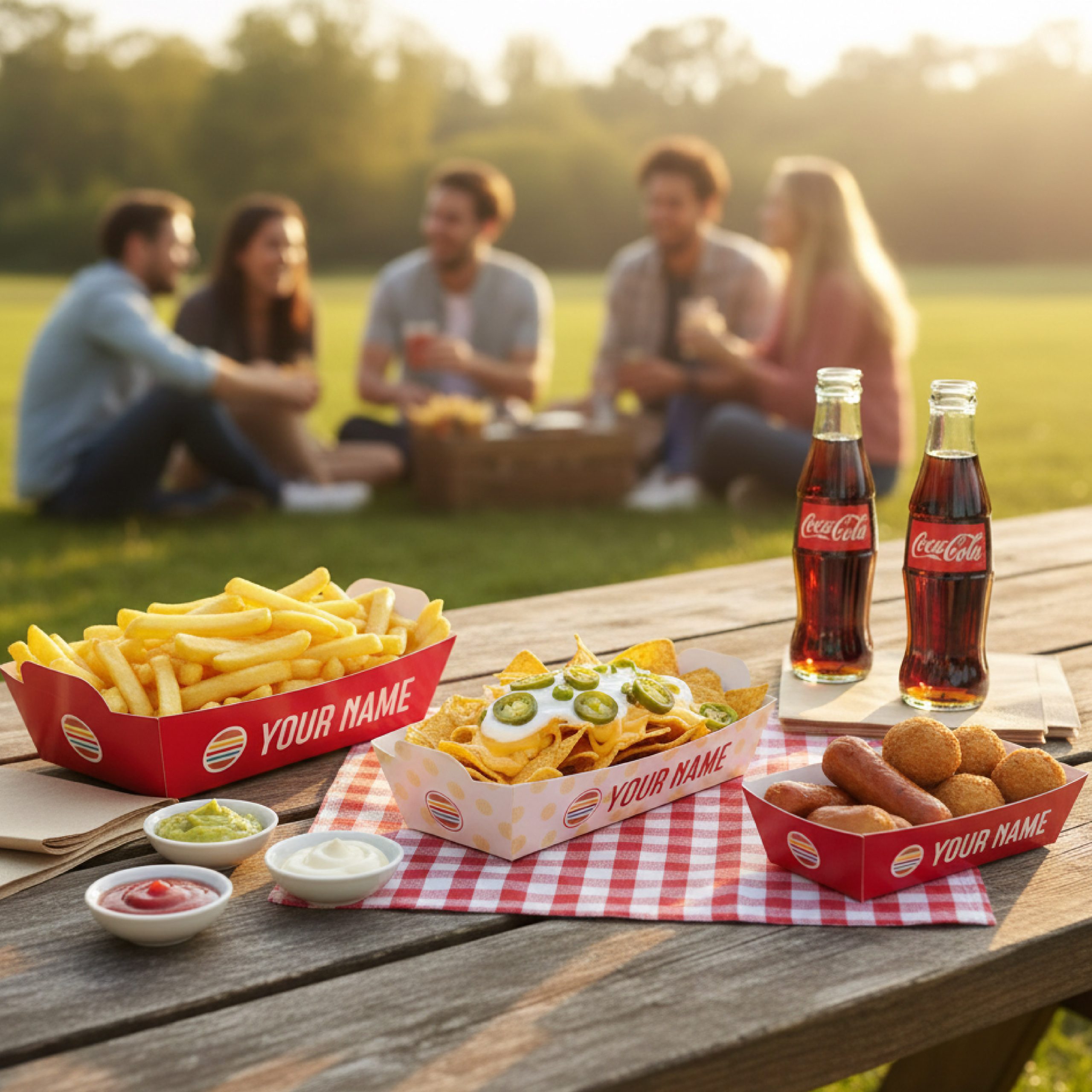 Snackbakjes bedrukken in verschillende maten beschikbaar. Snel leverbaar. Snackbakjes bedrukken?