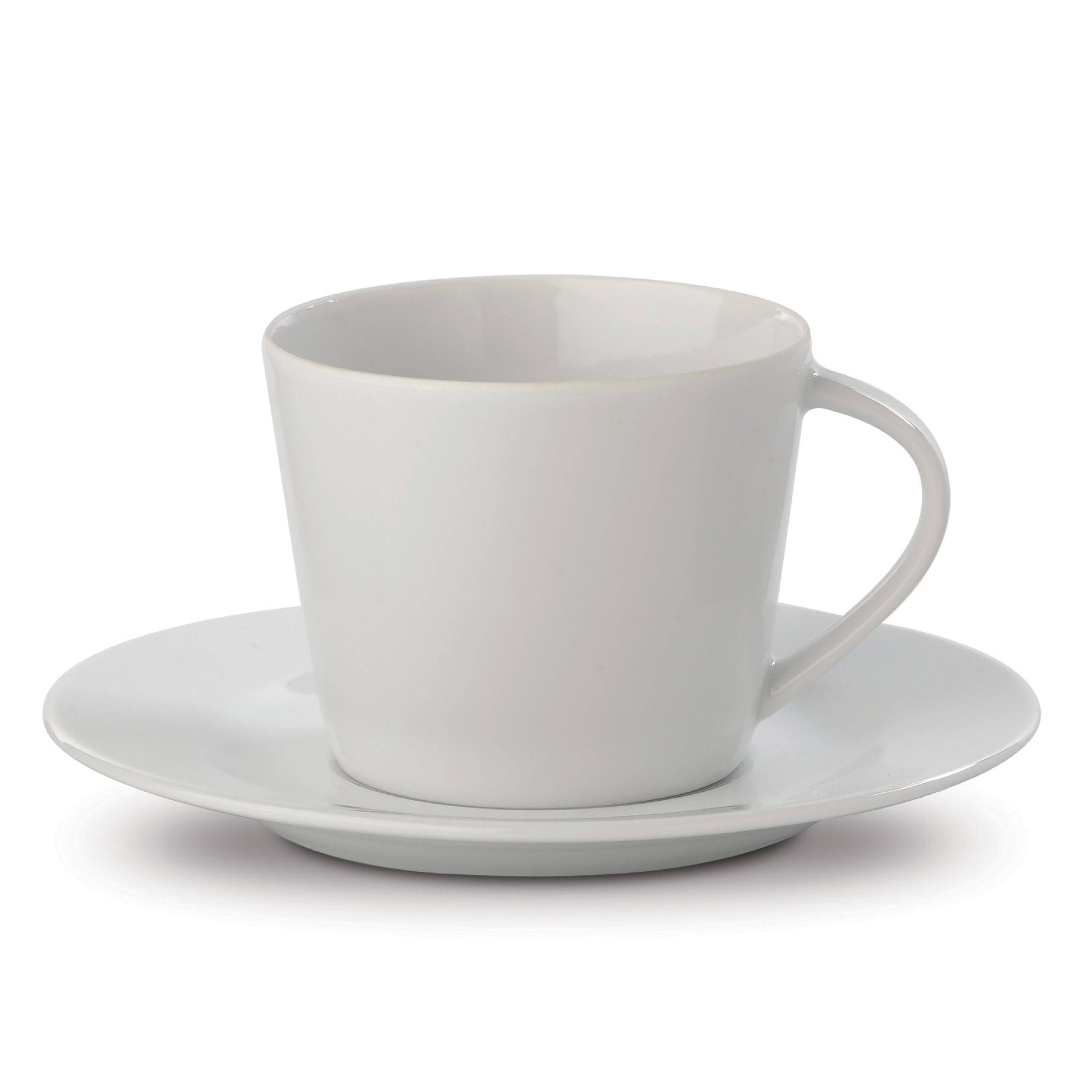 Kop en schotel gemaakt van porselein. Strak vormgegeven in conisch model.