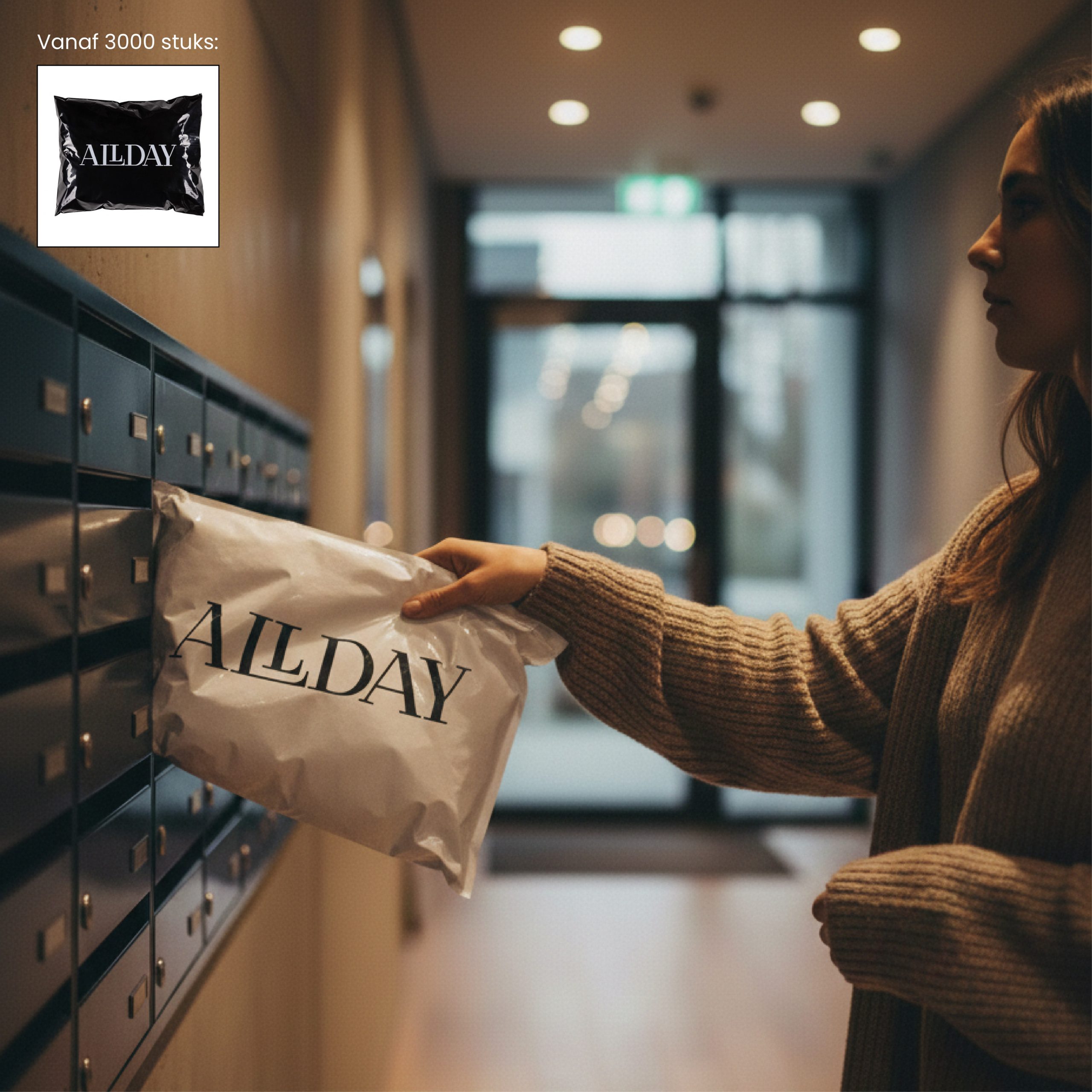 Onze verzendzakken zijn wit van kleur en kunnen bedrukt worden met jouw logo/design in 1 kleur of 2 kleuren, dit is mogelijk vanaf 250 stuks. Wil je liever een andere kleur zak of full colour all-over bedrukking? Dit kan vanaf 3000 stuks. Ook is het vanaf 3000 stuks mogelijk om een eigen maat te kiezen.