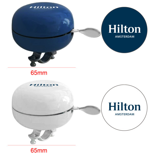 Fietsbel XL Ding Dong is een enorme fietsbel waar je een opvallende reclame uiting op bedrukt kan worden. Herkenbaar in uw eigen bedrijfskleur(en). De bovenkant van deze fietsbel kan bedrukt met 1 tot full colour kleurige opdruk.