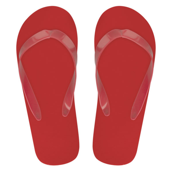 Rode strand slippers met gekleurd bandje. Opdruk van logo en/of tekst naar keuze!
