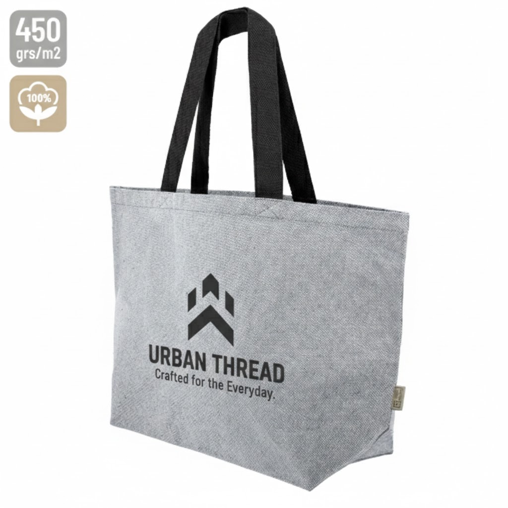 eleef de perfecte mix van stijl en functionaliteit met onze lichtgewicht, ruime, en slijtvaste katoenen tas van 56,5x38cm. Deze tas, gemaakt van gerecycled canvas katoen, biedt een handig binnenvak om uw belangrijkste items veilig op te bergen. Laat uw merk opvallen met dit duurzame en trendy promomateriaal. Ontvang vandaag nog uw gratis digitale ontwerp en offerte binnen één minuut!