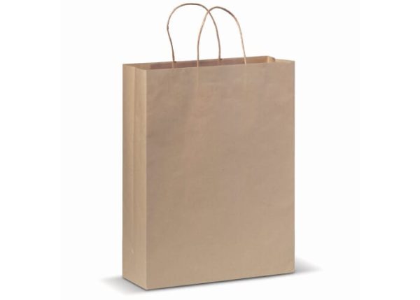 etover uw klanten met onze duurzame papieren kraft tas, FSC-gecertificeerd en gemaakt in Europa. Een stijlvolle, milieuvriendelijke keuze voor uw bedrukte relatiegeschenken! Ontvang direct een vrijblijvende offerte.