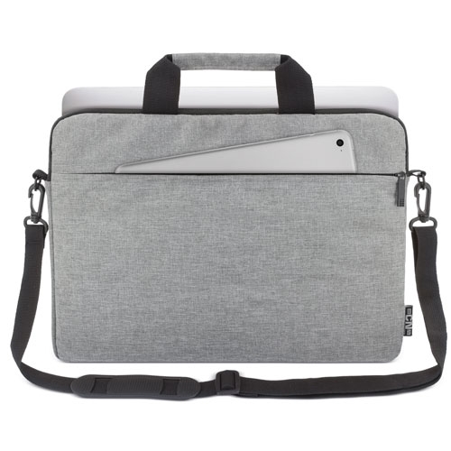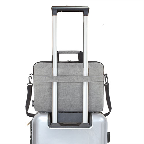 Een stijlvolle en functionele polyester laptoptas, ideaal voor het veilig vervoeren van uw laptop. Voorzien van een ritstasje en een elastische riem voor bevestiging op een trolley.